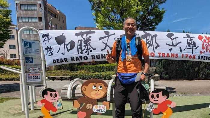 片道マイラーからかとぶんマイラーへ昨年、和田岬から浜坂まで完踏した拝啓 加藤文太郎、今年は逆ルート走って来ました。昨年の45時間を短縮し41時間40分でゴールしました。ひょんなことから完走メダルのクッキー100枚も作る事になり直前まで人を巻き込んでドタバタ。こちらは別途チャリティー報告も含めて上げるとして・・。スタート直後に携帯落とすは(他の方やスタッフさんの協力で小一時間で手元に戻る)、脚攣り地獄に見舞われるは(三宅師匠の神施術で回復)、真夜中の田んぼ道で一人の時ヘッデンのバッテリー切れるはでトラブル続きでした。しかし快も不快も含めてとにかく濃い時間に濃い経験。日常では決して味わえないカトブン・ザ・ワンダーランド。ワンオペのバイト君が壊れ掛けた養父のローソンから斎神社に向かう途中、真夜中に一人で田んぼしかない所を歩いてる時にヘッデンがご臨終。ヤバいなぁ〜と思いながら歩いていると前方に人歩いてる。ライト付けてないから地元の人がこんな時間に散歩かしら…と思ってたらナント福西さん。ヘッデンはと聞いたら私と同じようについさっき機能しなくなったとか。連れが出来た安心感から満天の夜空を堪能しながらウォーキング。斎神社エイドに到着したら昨年も笑顔で出迎えてくれたマルちゃんが。ワガママなかとぶんランナーの要求にテキパキ動く姿に二度惚れ。自社農園のプチトマトを振る舞ってくれたけどその美味しさに感激。その後、長〜いトンネルを進んでたら不気味な声がこだまして耳を澄ますと、は・や・く・お・い・で〜と。三途の川ならぬ三途のトンネルか?潜り抜けた先が異次元世界だったらどうしよう思ったらカッパのお姉さんのエイドでした。トンネル・プレイでおもてなしをしているそうな(いや怖いってば)走れる所は走る歩く所は歩く。昼間は暑いので日が暮れてからペースアップ。三木から西神辺りまで良いペースで走れたのに農業公園過ぎた辺りからジワジワと足裏が痛くなって来て、白川台辺りでは一歩歩く毎にジワ〜んと脳に響く痛みが。やはりアスファルトは過酷だわ。今回、睡眠は合計2時間。一つ目は生野ローソンで明け方に寝袋型エマージェンシーシートに包まって。2回目は三木の私設エイドで椅子に座って30分程度。最後は白川台のローソンで。一緒に行った師匠夫妻に30分だけ寝かせて!とお願いしてシートに包まって仮眠。これでも寝ないと動けない割には頑張ったのですゴール近く、和田岬線が見えた時には思わず駆け出してしまった。やっと帰ったよ〜。アレ?さっきまでの足の痛みどこ行ったん?何で走れるん、私?いつも通る通勤ルートだけど今日だけはビクトリーロード。こんな軽やかな気持ちでこの道を通ることなんて後にも先にもないだろなゴールではイサちゃんがメダルを掛けてくれた。作った本人が一番危ぶまれた完走メダル。安堵と感動と身体あちこちの痛みが一緒で頭がバグりそう。ビールやミネストローネ、焼きそば、お肉まで頂いて少し仮眠して最終ランナーのゴールを見届け長い長い旅が終わりました。前回はグッチさんがサポートカーで移動エイドしてくれてトラブルゼロ。常に先回りして移動エイド開いて待ってくれてほら飲め、ほら食えとばかりに次々出されるものを摂取すれば良かった。今回脚が攣ったのも水や食べ物をきちんと摂取しなかったのが原因。そんな中、学んだ事は自分で痛い思いをしないと経験値は上がらない!勿論、自分の力だけでは完走は出来るワケもなく(特に施術で脚攣り直してくれた三宅師匠にはもぅ足を向けて寝れません)関係者の皆さまには感謝しかありません。ありがとうございました